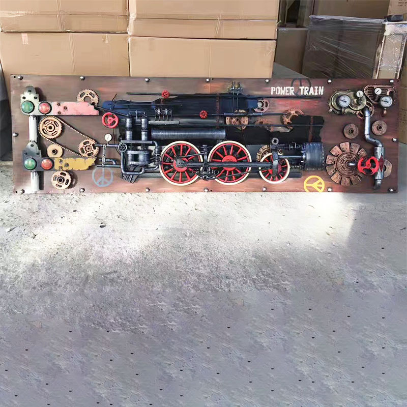"3D Train Mural" is an extended wall hanging that perfectly carves the train of the industrial steam era on the wooden board, combining multiple elements such as retro, steam era, and punk culture. The steam pipes, gears, and wheels on the murals are all perfect proof of the retro punk steam style.