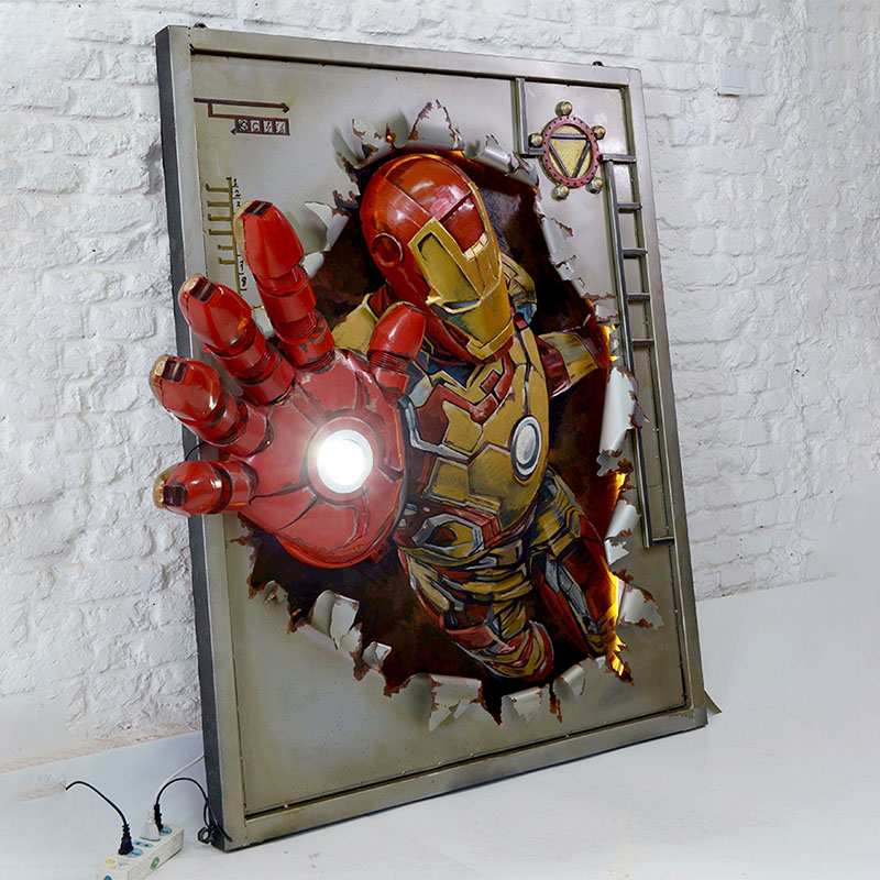 Metal 3D Spiderman Sculpture with Light Wall Sculpture Mural