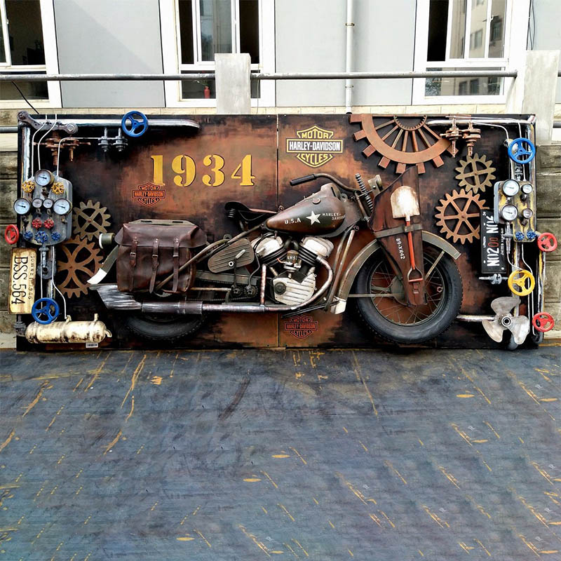 "Metal 3D Murals" are different from previous murals. They are newly created with metal craftsmanship and three-dimensional art, and use the texture and processing technology of iron materials to create lifelike and layered works of art. The biggest feature is the three-dimensional effect. By welding and assembling the raw materials, the 3D objects are presented in the photo frame, making the work "jump out" from the plane and creating a strong sense of space.