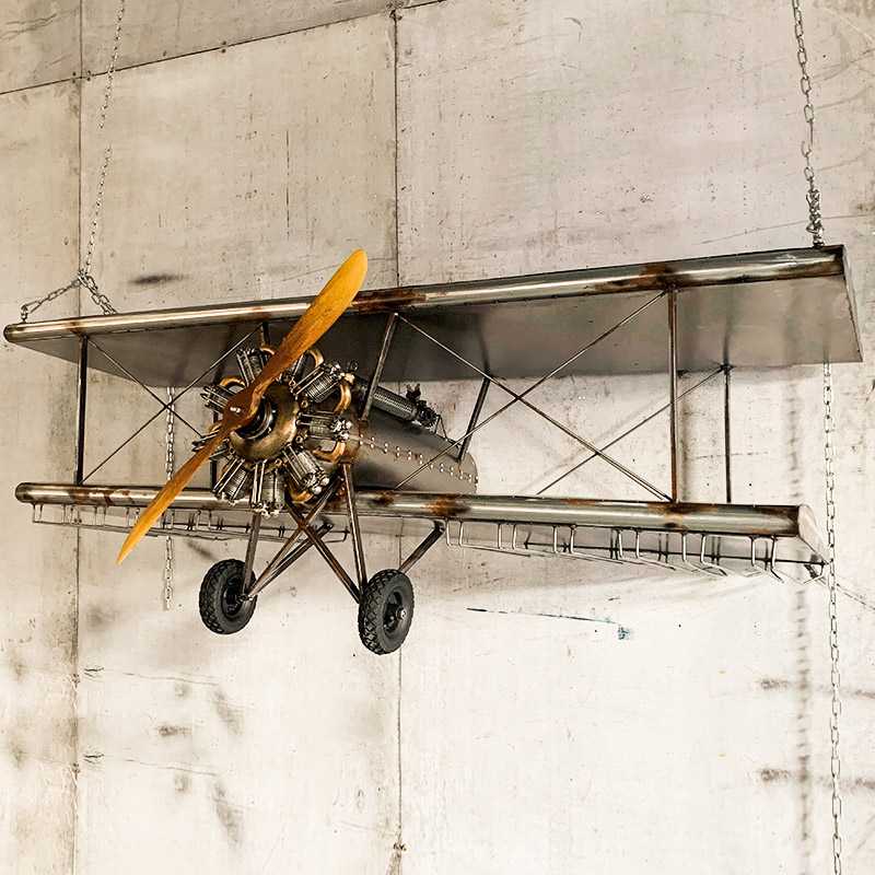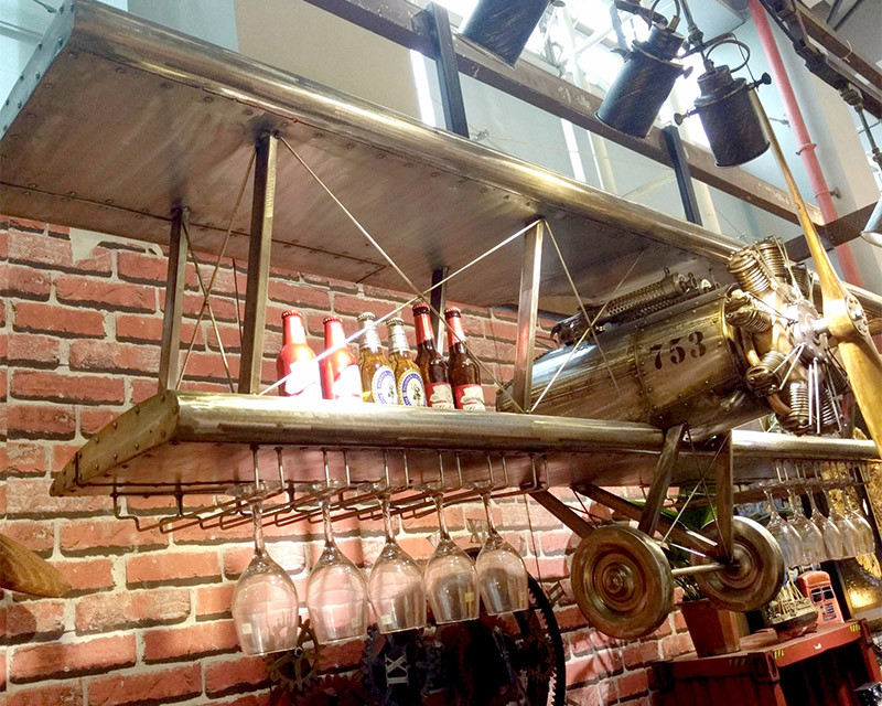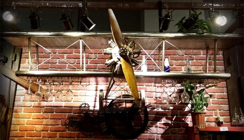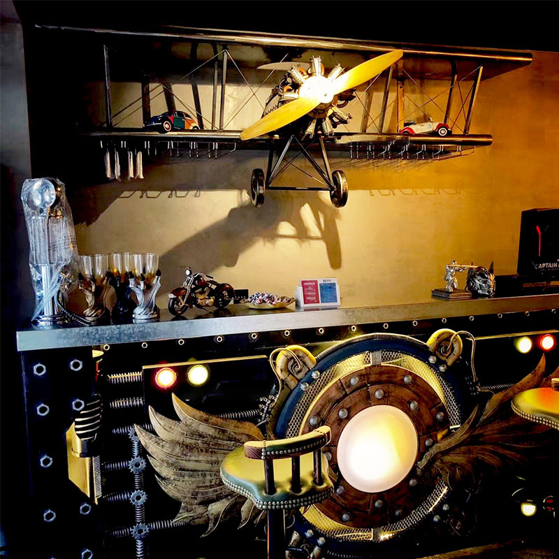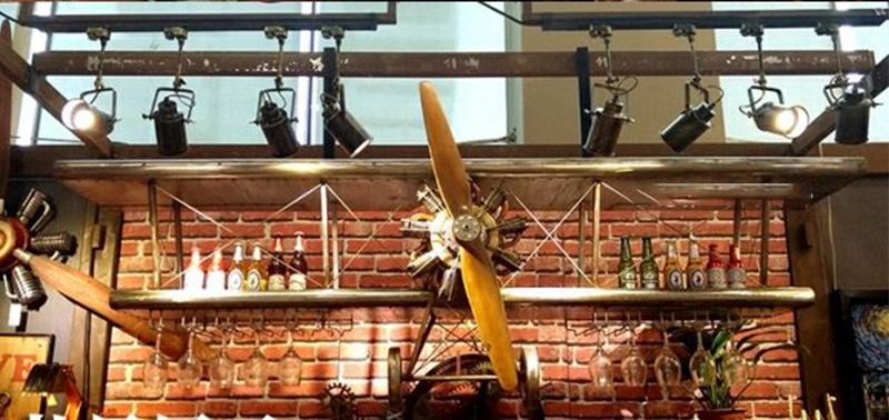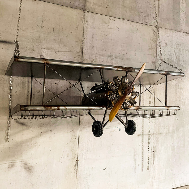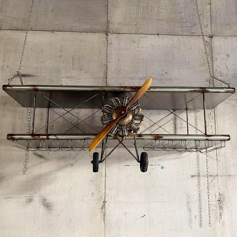 "Aircraft Wine Rack" adds the function of placing wine glasses and glasses by transforming the appearance of a retro fighter. It not only looks cool but also takes into account wall decoration. It is very suitable for decoration for retro industrial-themed bars, cafes, and clubs. It is also loved by aviation fans and punk retro enthusiasts.