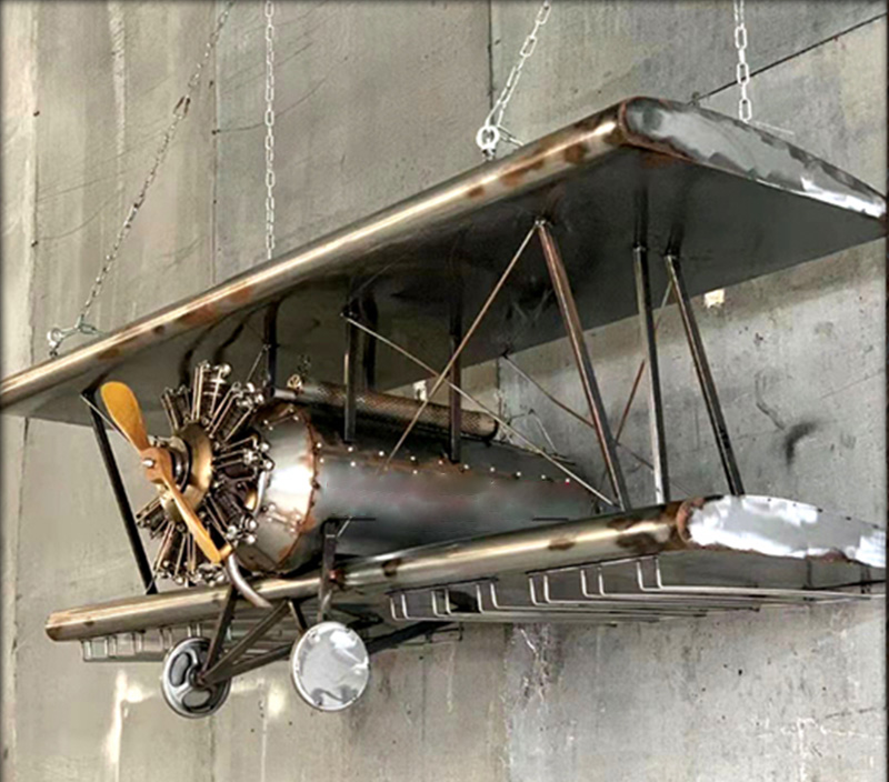 The design of the "aircraft wine rack" imitates the biplane of the early 20th century, with classic retro aviation aesthetics. The wings, propellers, wheels, metal fuselage and other details are simulated and reproduced to add a sense of reality.