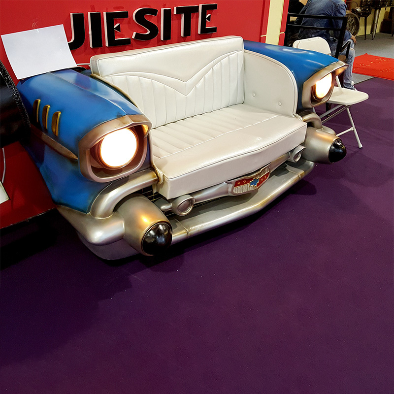 In addition to being a furniture sofa, the "Retro Car Front Sofa" is also an art sculpture decoration, suitable for car-themed exhibitions, bars, cafes, restaurants, hotels, private exhibition halls, etc., which can achieve multiple goals at one stroke, taking into account both viewing and practicality, and increasing the fun of the space.
