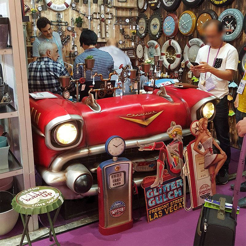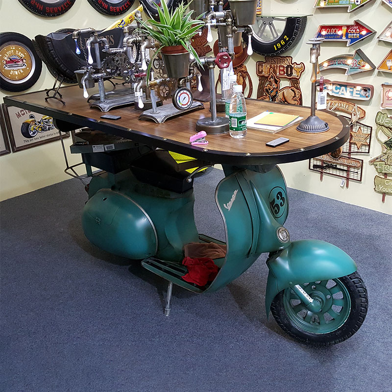 The design inspiration comes from classic models of the 1950s and 1970s, such as Volkswagen Beetle, Chevrolet, Ford Mustang and other classic models. This type of table is not only practical furniture, but also often regarded as a decorative art piece. It can bring a strong nostalgic atmosphere and personality to the space. It is suitable for cafes, bars, restaurants, clubs, studios and other occasions.