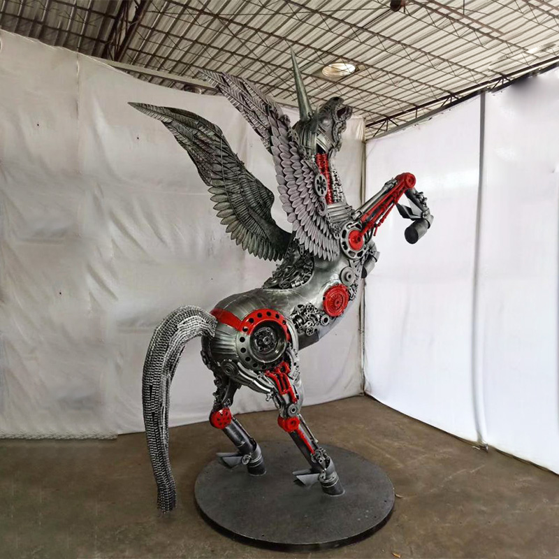 The punk horse sculpture with metal wings is like a horse that can fly in the air. This is a bold and imaginative art sculpture, which has become an eye-catching iconic work of art in art exhibitions, parks, and squares.