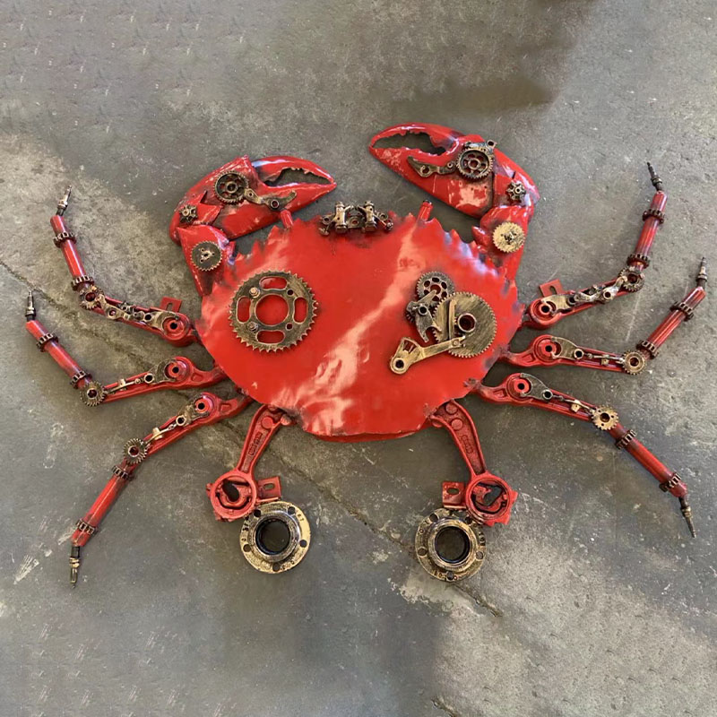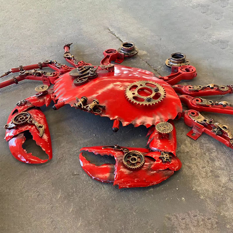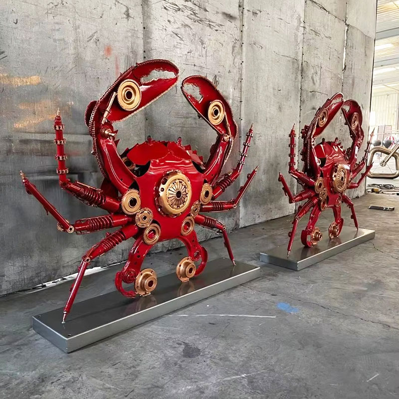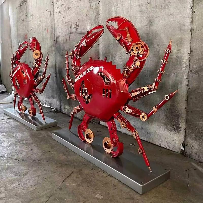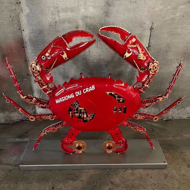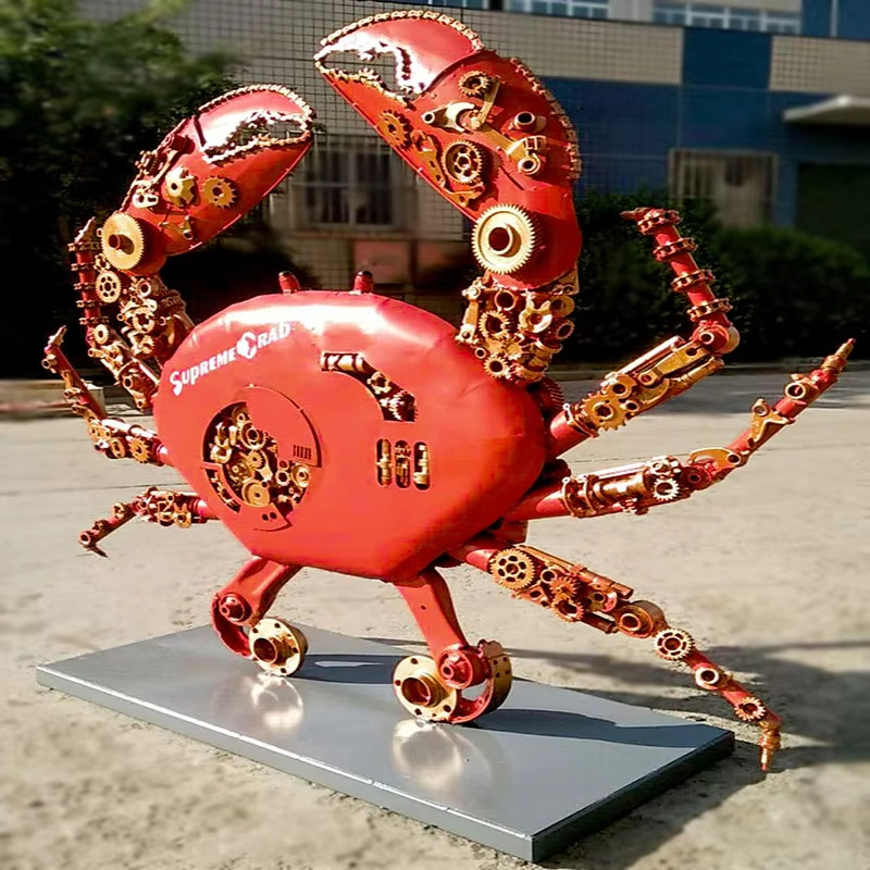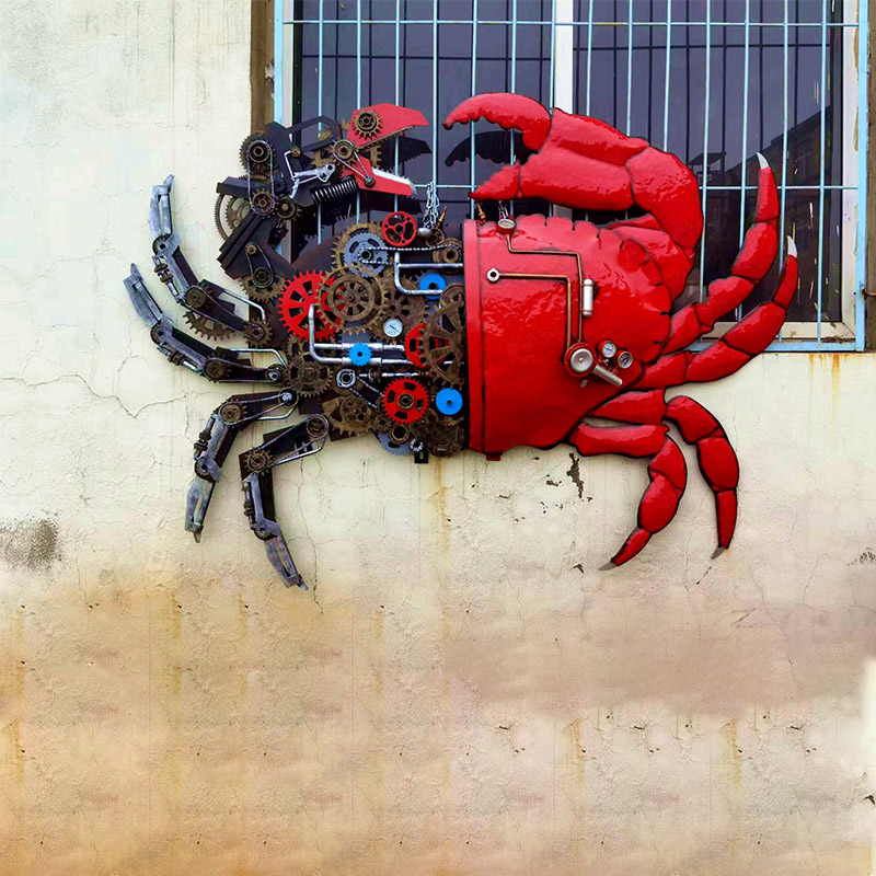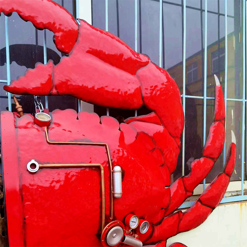 "Punk Crab" Sculpture is a new type of sculpture with heavy metal retro style as the theme. The overall sculpture is dominated by metal materials, with body details, gears, steam pipes, and water dials, all of which are created in the industrial steam era of the last century.