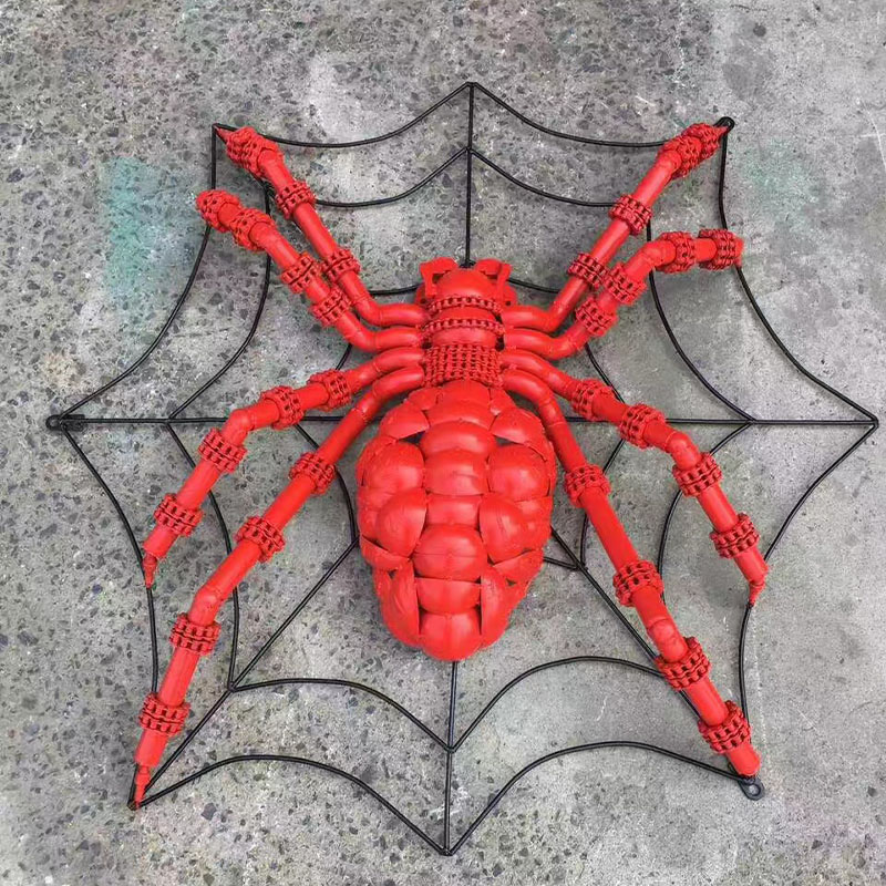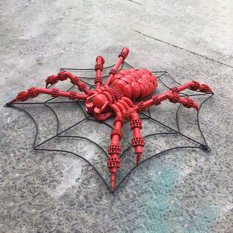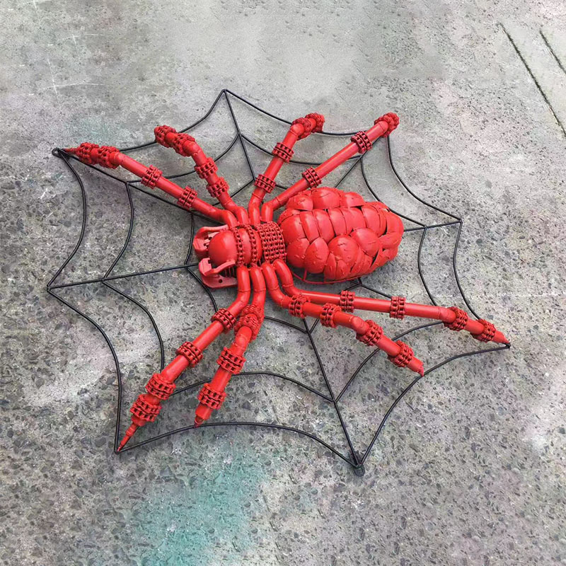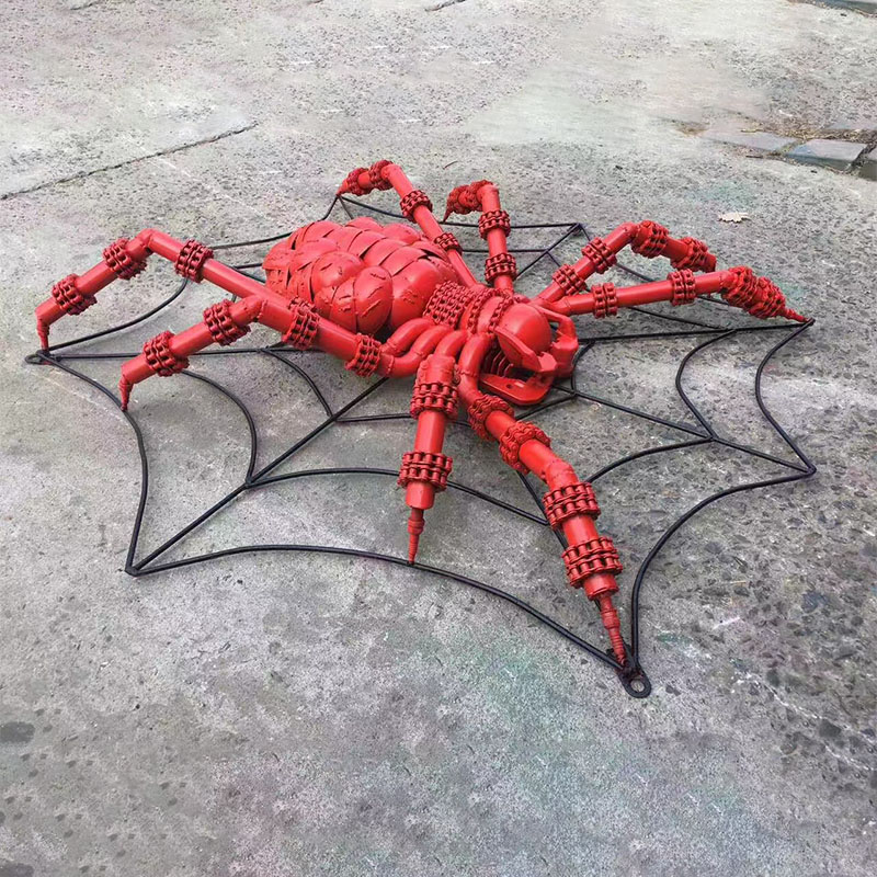 "Punk Metal Spider" Sculpture has a unique design, full of mechanical and industrial style. The red appearance is very visually impactful, as if it is assembled from multiple metal parts. The spider's trunk, legs and joint structure all show exquisite mechanical structures, giving people a sense of steampunk or cyberpunk.