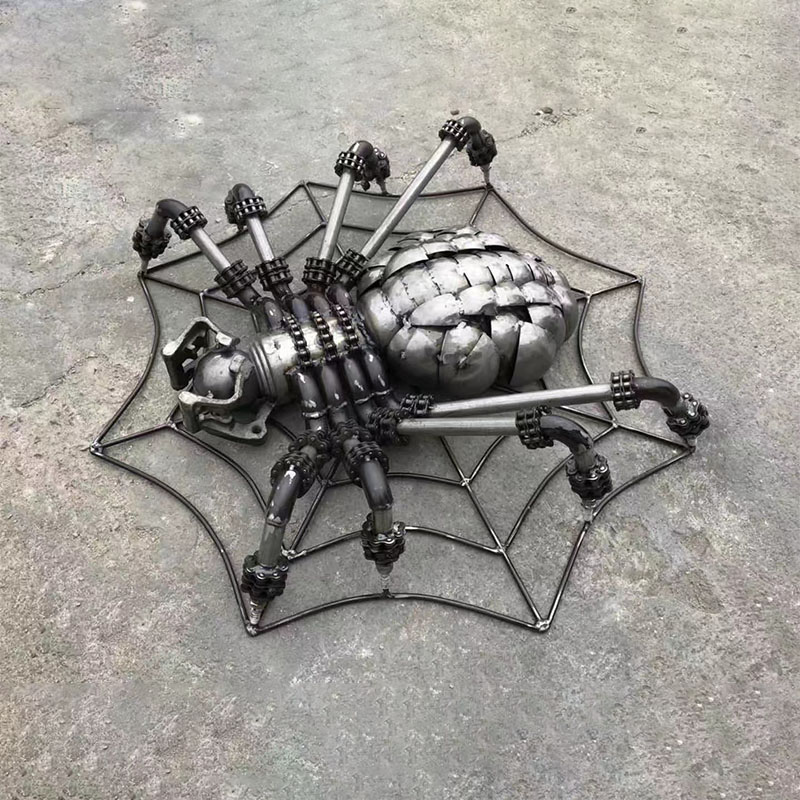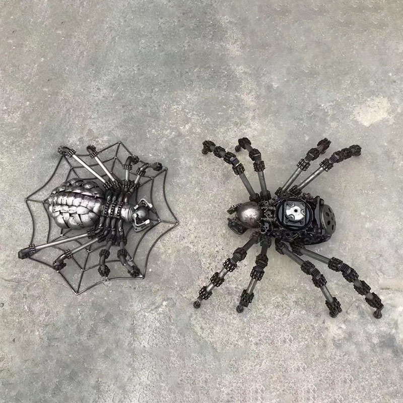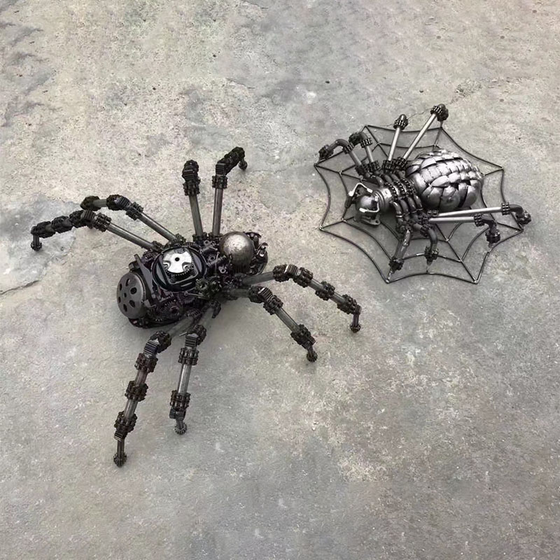 The leg design of the "Punk Metal Spider" shows a tight industrial texture through multiple metal segment necklaces, and is also matched with a spider web background, which is similar to the state of a real spider and also sets off the metal texture and the overall three-dimensional sense of the sculpture.