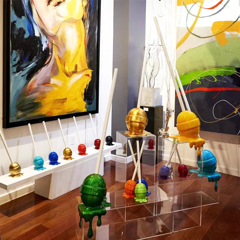 "Melting Lollipop" Sculpture is one of the representative works of modern pop art. The melting process presents it as a physical sculpture art through artistic creation. The addition of multiple colors makes the lollipop more colorful, creating a vibrant and dreamy artistic atmosphere.