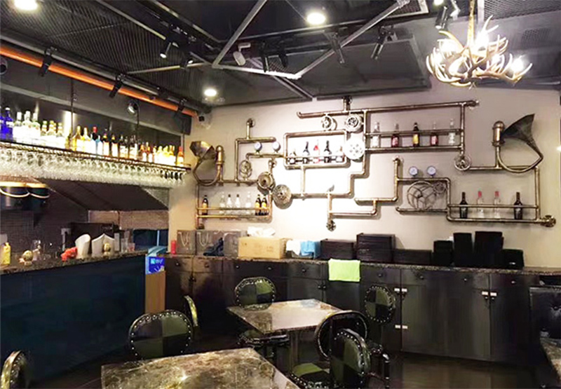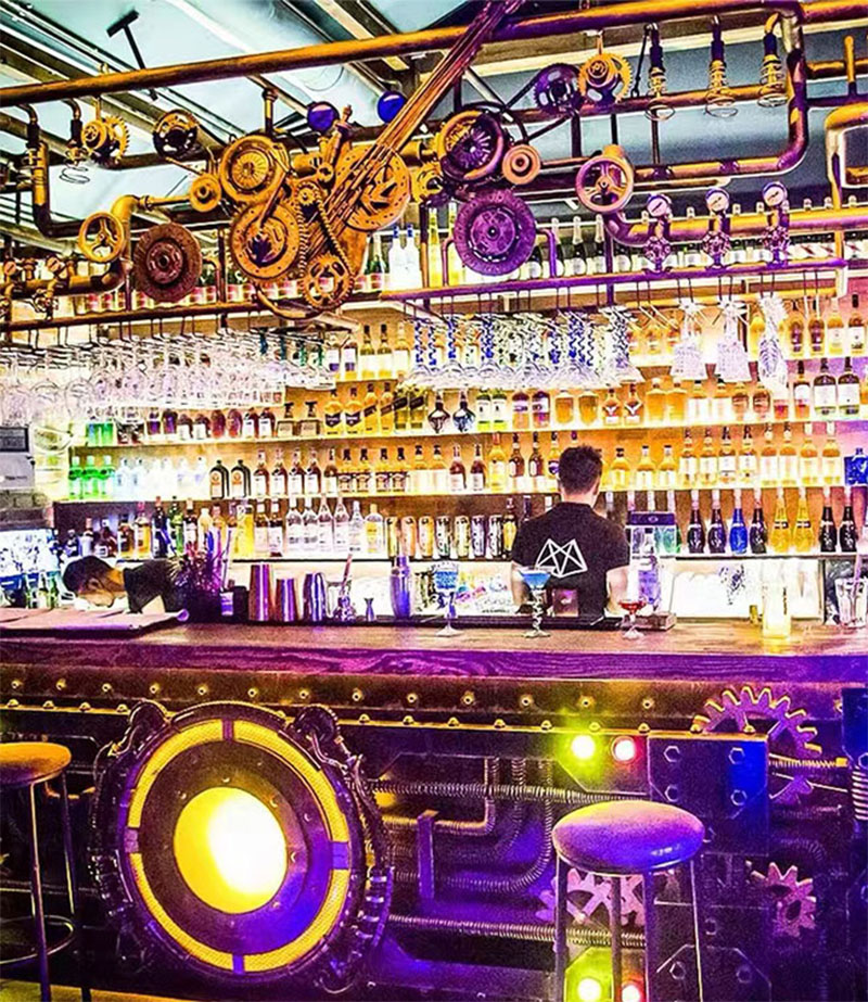 In addition, we also prepared a set of DJ bar counters, metal robot drum sets, water pipe walls, and gear wall clocks for the decoration of the bar. After the client completed the decoration of the entire bar, he also welcomed many of his customers. They were all shocked by this "steampunk metal" style series of decorations. When you go to the bar, it seems like you have traveled back to the retro industrial era of the last century. There is a bit of retro feeling in the coldness that makes people think deeply.