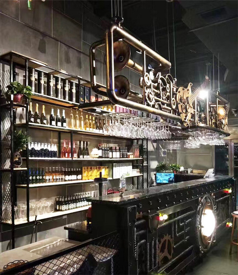 Hanging wine glass rack: We customized a wine glass rack with "metal water pipe" as the element for customers in the air. The 16-foot wine glass rack is suspended in the air, which not only saves space, but also makes it easy to take and makes people's eyes bright. Special designs always attract people's attention.